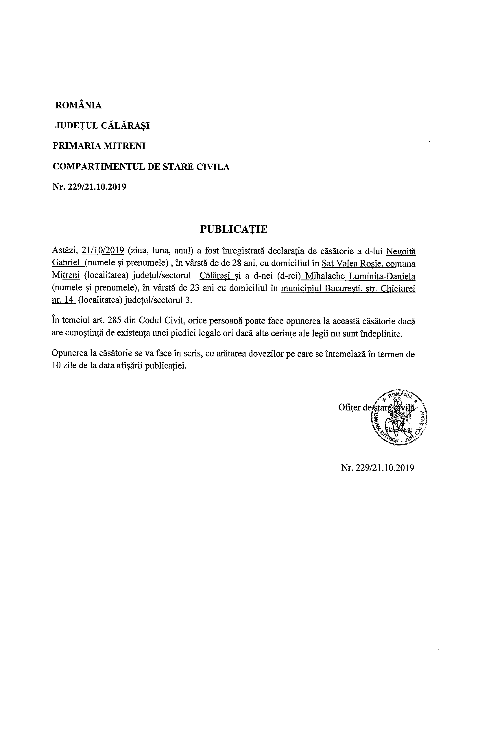 2019.10.21-Publicatie casatorie Negoita Gabriel